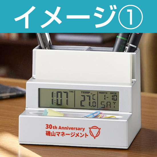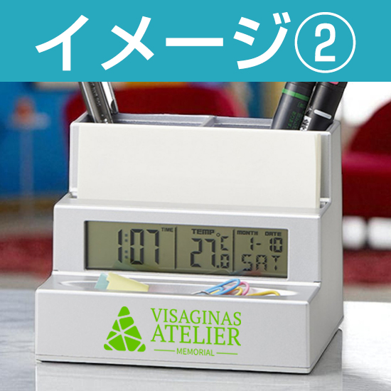 ペンスタンドや小物入れも付いた多機能時計です。