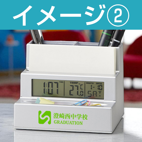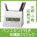 時計、アラーム、カレンダー、温度計、タイマー、ペンスタンド。