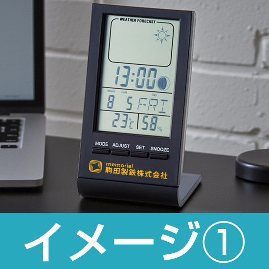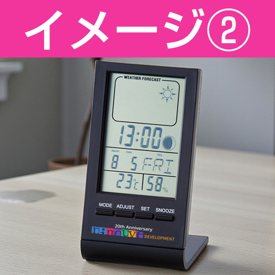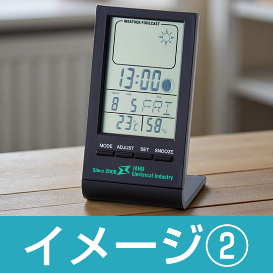 天気予報の機能も付いたコンパクトな温湿度計付多機能デスククロックです。