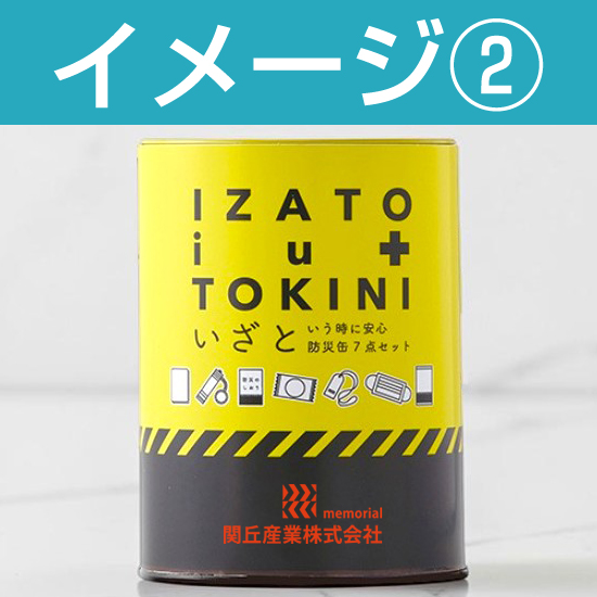 | セット内容 | 缶の中に防災セット7点×1(缶、アルミシート、ホイッスル、ミニライト(電池付)、マスク、圧縮タオル、防災のしおり) |