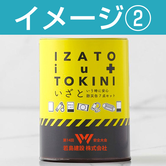 | セット内容 | 缶の中に防災セット7点×1(缶、アルミシート、ホイッスル、ミニライト(電池付)、マスク、圧縮タオル、防災のしおり) |