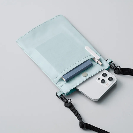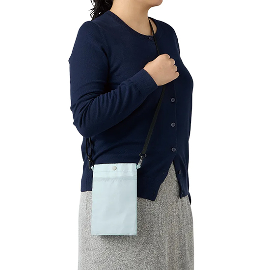フラットなアルミ蒸着シートを採用したことでサコッシュとして使用する際にもごわつきがありません。
