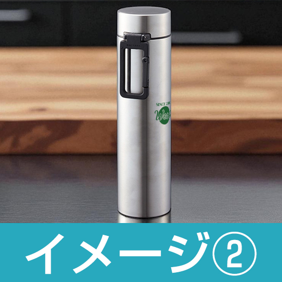移動中に持ち運びが便利なカラビナフックが付いたサーモボトルで、ミニマルなデザインが魅力。