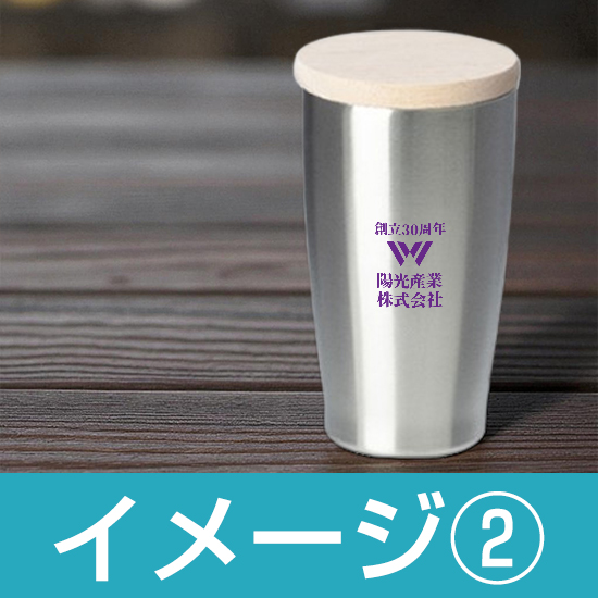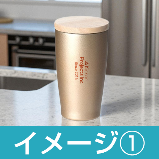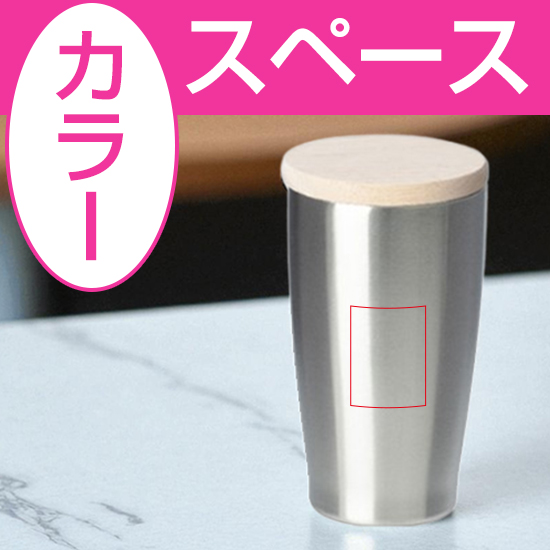 天然木の蓋が付いた、真空2重構造のステンレスタンブラー。