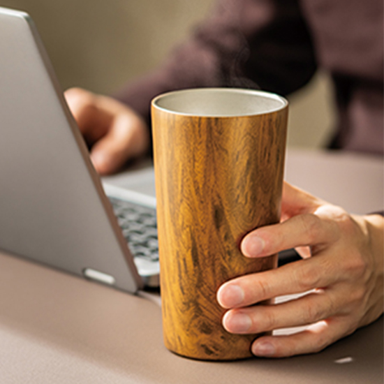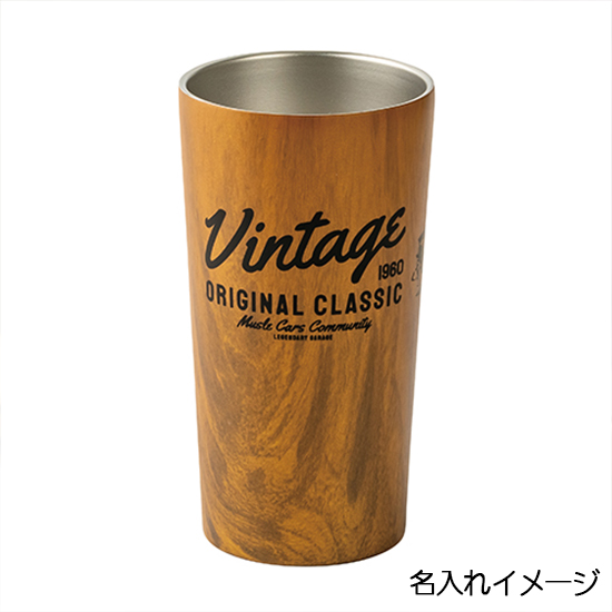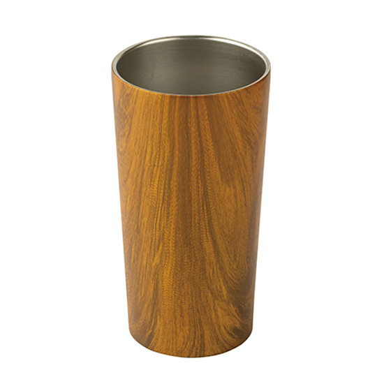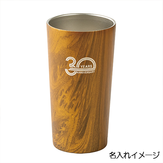 贈り物にふさわしい高級感漂う木目調タンブラー。