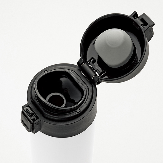 ロックを外しボタンを押せばフタがオープン、片手で飲めます。