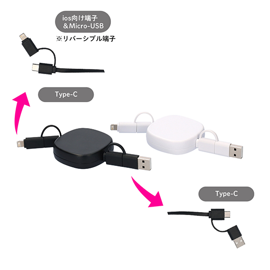 ・ios向け端子&Micro-USB(※リバーシブル端子)、Type-C