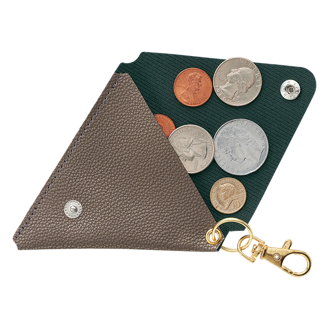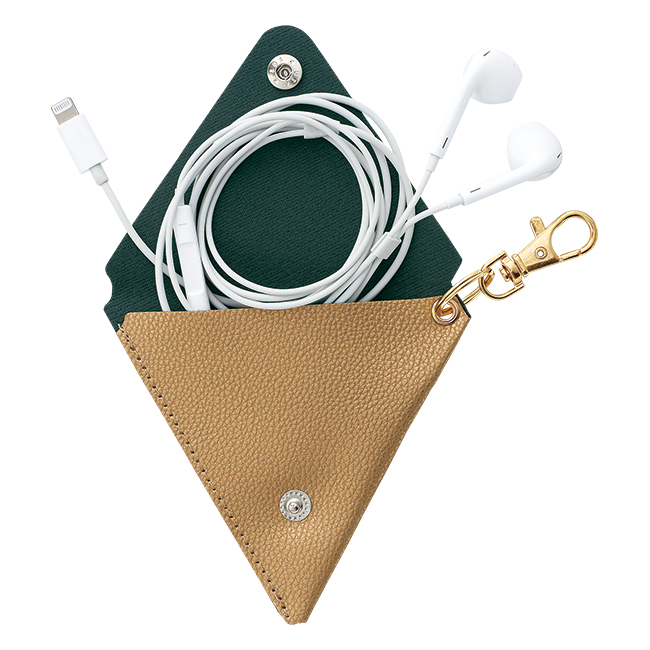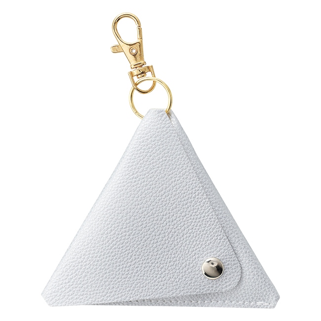 小物や小銭をすっきり携帯、トライアングル形状のミニポーチ。