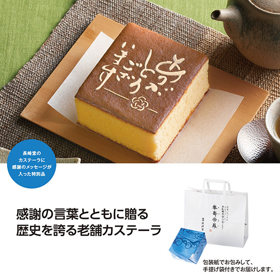 長崎堂のカステーラに感謝のメッセージが入った特別品です。