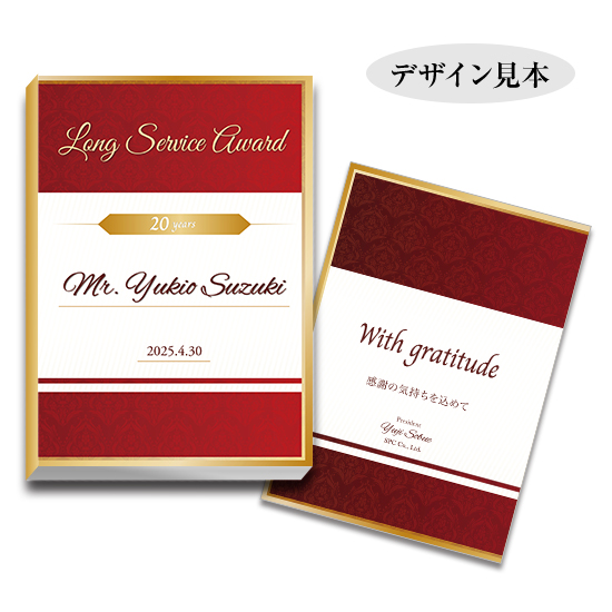 永年勤続や功労表彰にふさわしい、上品で重厚感あるデザインのブックカバー。感謝の言葉を美しく演出し、大切な節目にふさわしい特別なギフトです。