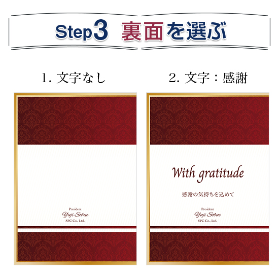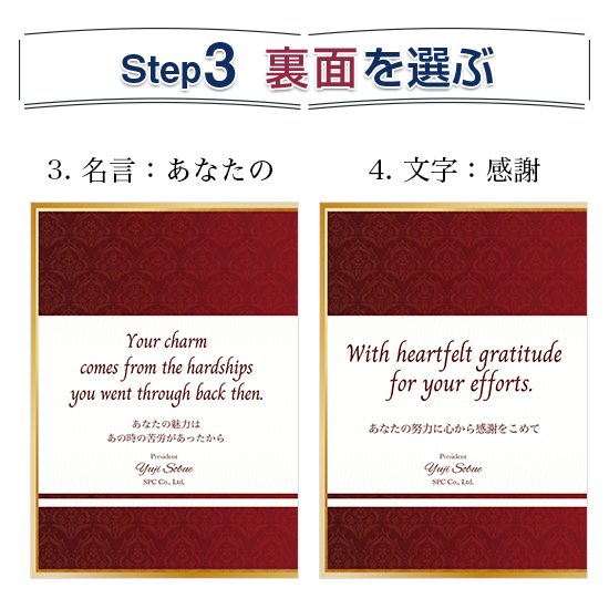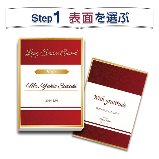 背表紙に印字をご希望の場合は、表彰の種類とお名前が入ります。(有料)