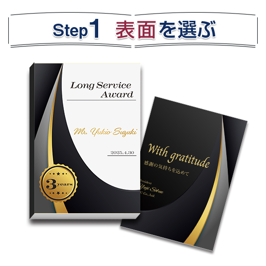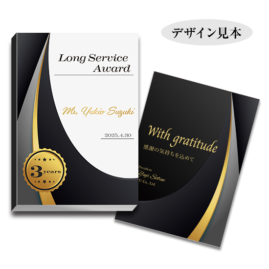 永年勤続や功労表彰にふさわしい、上品で重厚感あるデザインのブックカバー。感謝の言葉を美しく演出し、大切な節目にふさわしい特別なギフトです。