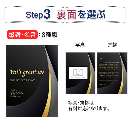 裏面に挨拶文や写真をご希望の場合は、別途お見積りいたします。