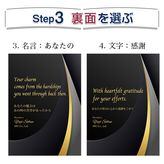 背表紙に印字をご希望の場合は、表彰の種類とお名前が入ります。(有料)