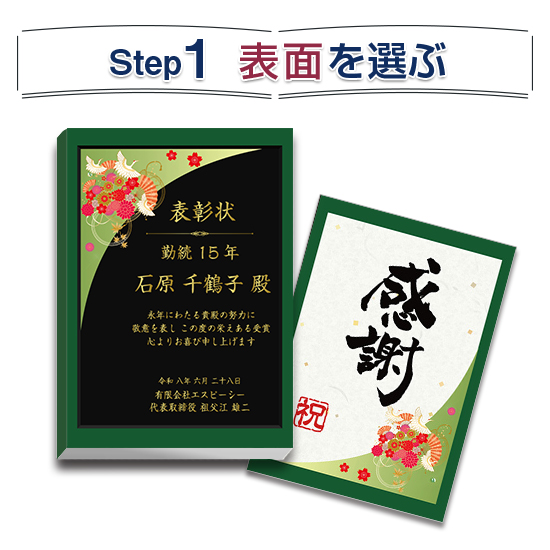 背表紙に印字をご希望の場合は、表彰の種類とお名前が入ります。(有料)