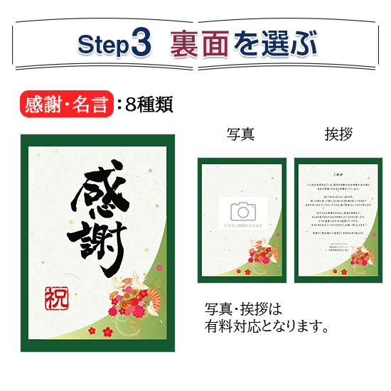 裏面に挨拶文や写真をご希望の場合は、別途お見積りいたします。