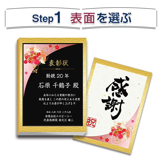 背表紙に印字をご希望の場合は、表彰の種類とお名前が入ります。(有料)