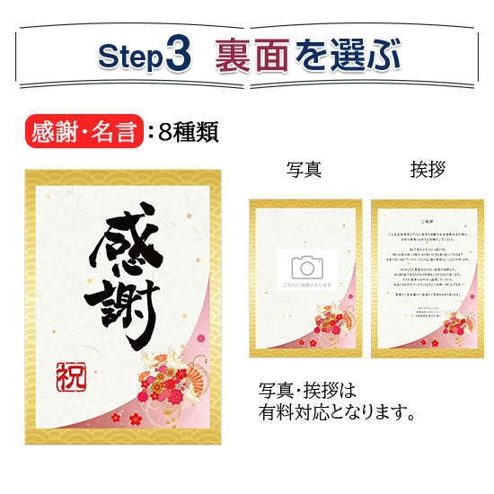 裏面に挨拶文や写真をご希望の場合は、別途お見積りいたします。