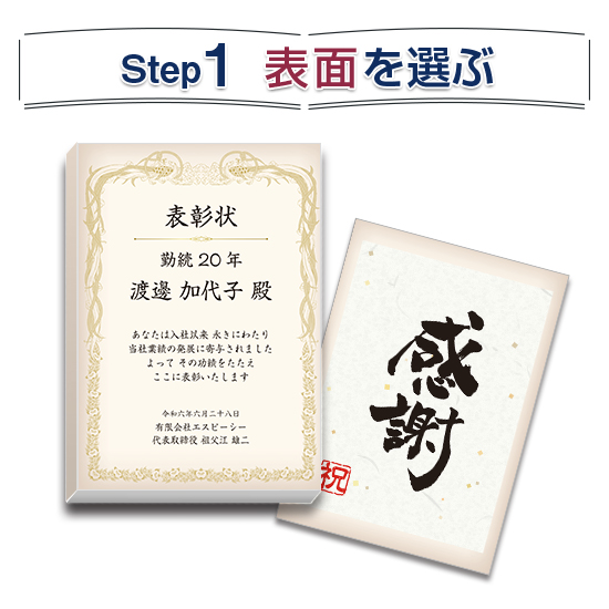 背表紙に印字をご希望の場合は、表彰の種類とお名前が入ります。(有料)
