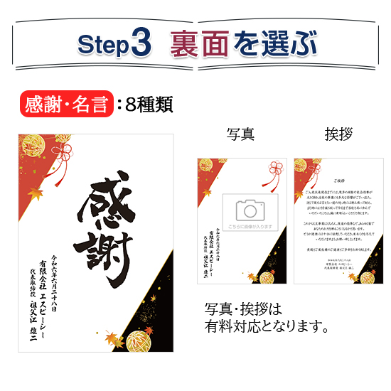 裏面に挨拶文や写真をご希望の場合は、別途お見積りいたします。