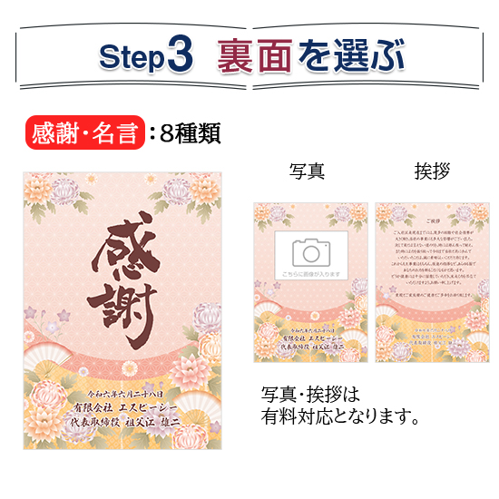 裏面に挨拶文や写真をご希望の場合は、別途お見積りいたします。