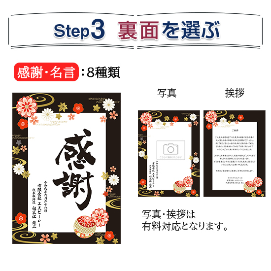 裏面に挨拶文や写真をご希望の場合は、別途お見積りいたします。