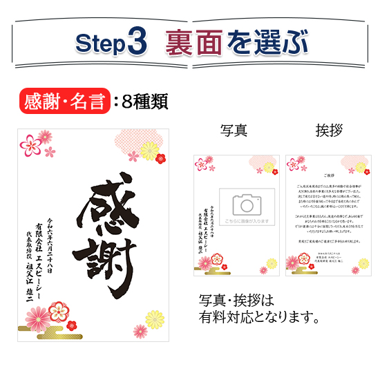 裏面に挨拶文や写真をご希望の場合は、別途お見積りいたします。