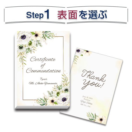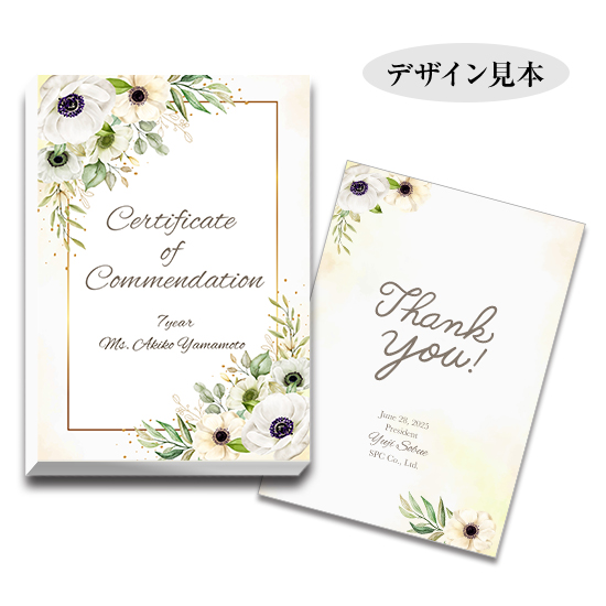 背表紙に印字をご希望の場合は、表彰の種類とお名前が入ります。(有料)