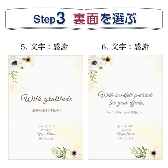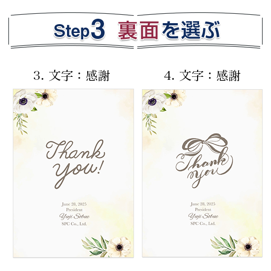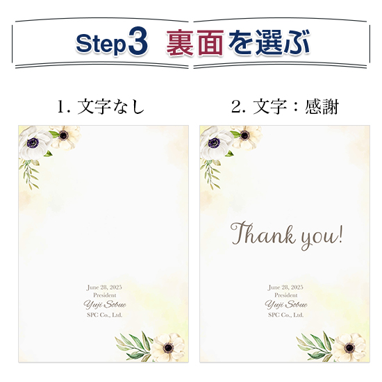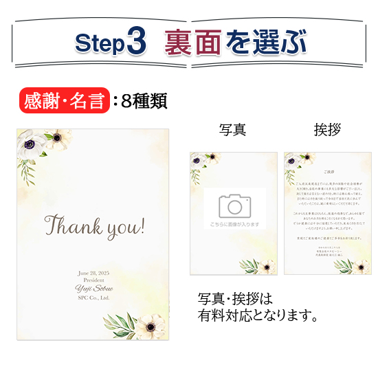 裏面に挨拶文や写真をご希望の場合は、別途お見積りいたします。
