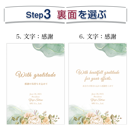 華やかな花柄と上品な書体で、感謝と敬意をエレガントに伝えるブックカバーです。