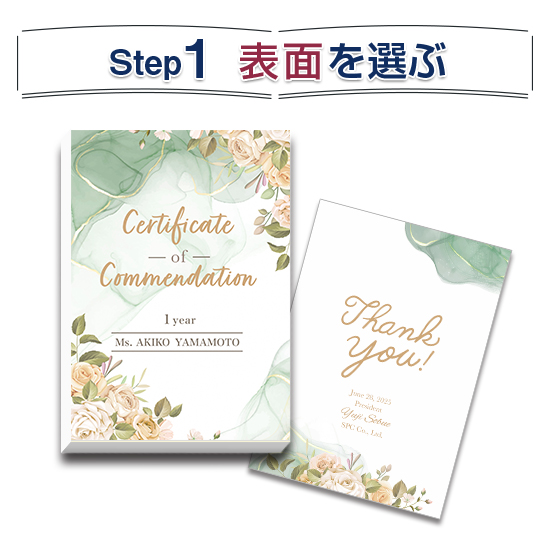 背表紙に印字をご希望の場合は、表彰の種類とお名前が入ります。(有料)