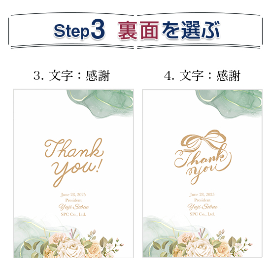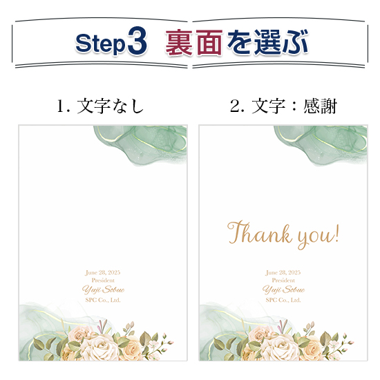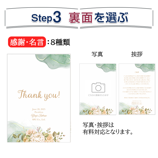 裏面に挨拶文や写真をご希望の場合は、別途お見積りいたします。