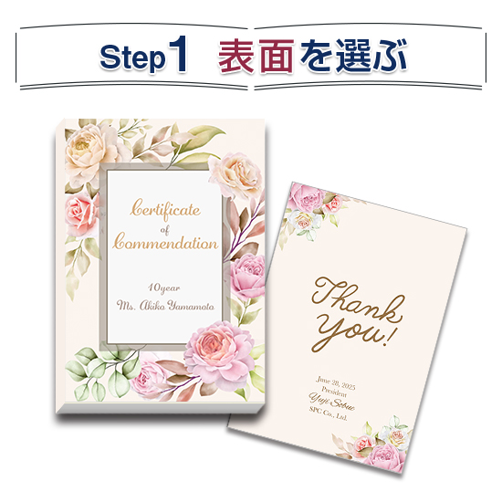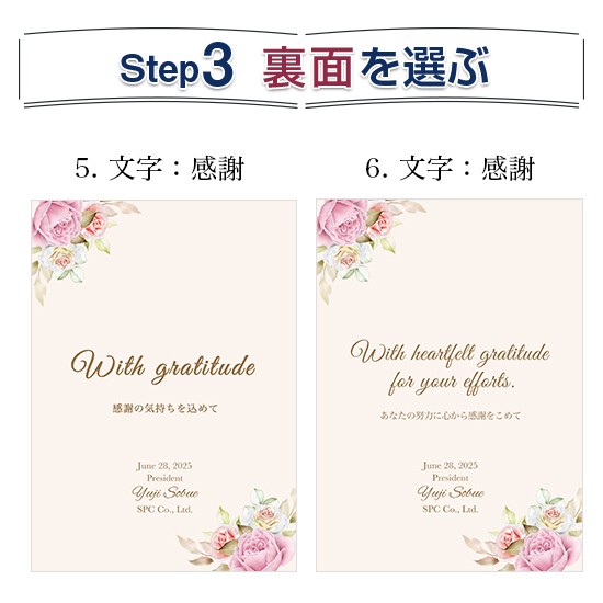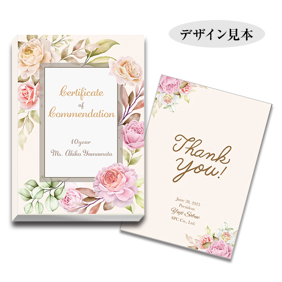 華やかな花柄と上品な書体で、感謝と敬意をエレガントに伝えるブックカバーです。
