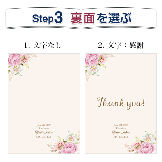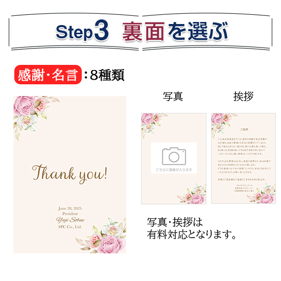 裏面に挨拶文や写真をご希望の場合は、別途お見積りいたします。