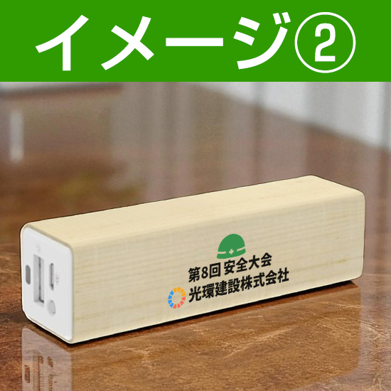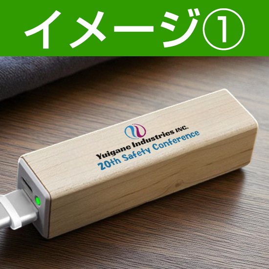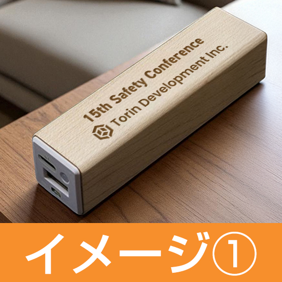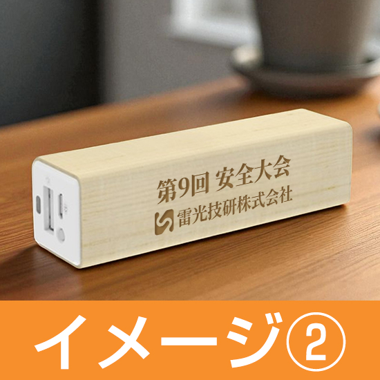 なめらかな表面のメープルウッドで作られた本体にロゴやメッセージを載せることができる、ナチュラルでおしゃれな『モバイルバッテリー(MAP)』。