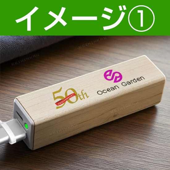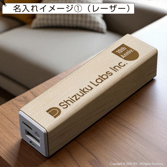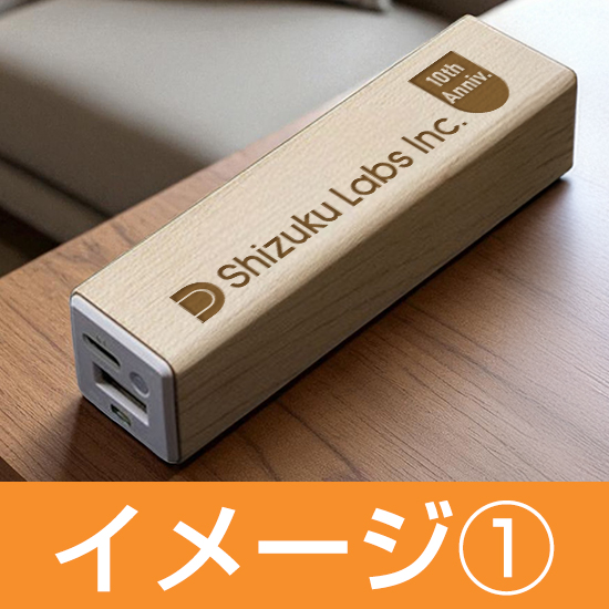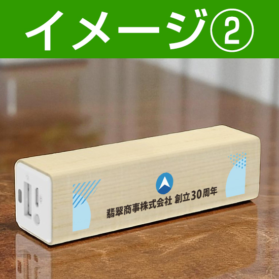 なめらかな表面のメープルウッドで作られた本体にロゴやメッセージを載せることができる、ナチュラルでおしゃれな『モバイルバッテリー(MAP)』。