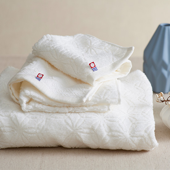 今治の匠が織り成すタオルのやわらかく淡い色と伝統柄から上品さが漂い、パイルのやさしい肌触りをふわりと感じる穏やかな日々を贈ります。