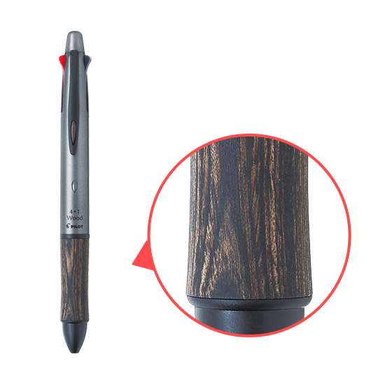 ボールペン4色(黒・赤・青・緑)とシャープペンシルを搭載した多機能筆記具です。