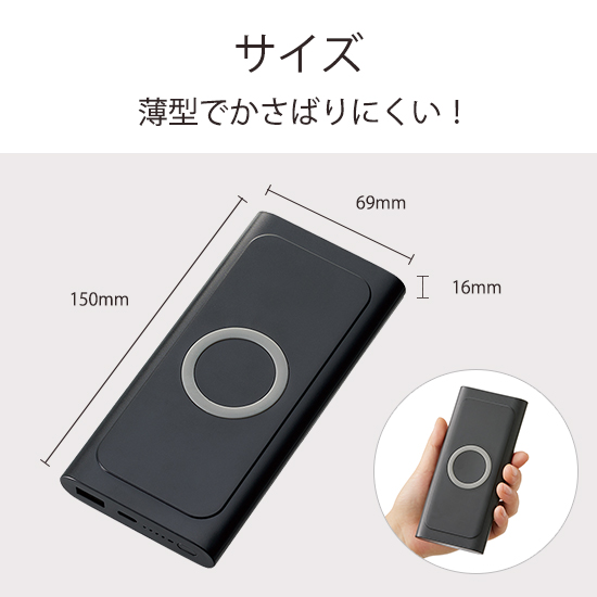 容量10000mAhのワイヤレスモバイルチャージャーです。