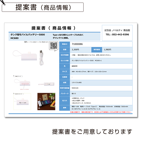 | 商品名 | タンク型モバイルバッテリー5000 MC680 |