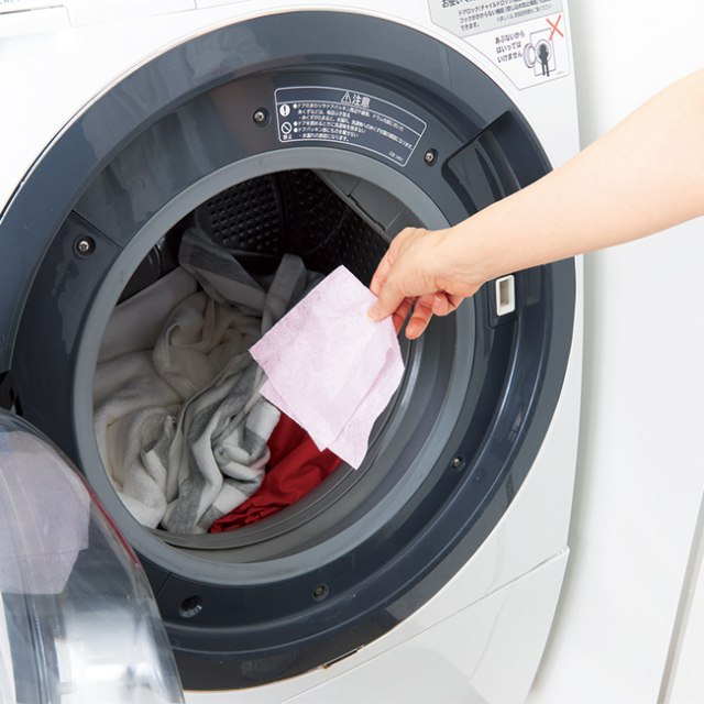 いつもの洗濯に入れるだけで簡単に色移り防止。