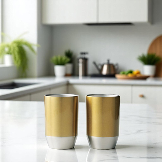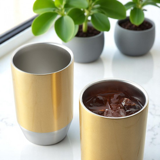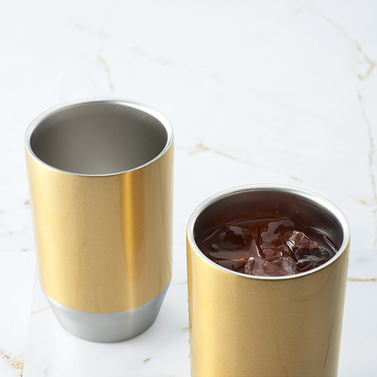 高級感の溢れるボックス入りゴールドカラーのペアタンブラー。
