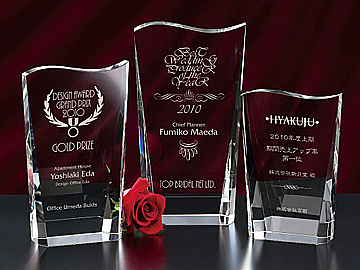 3 【仕上がりイメージのご確認】 楯やトロフィに文字やロゴが入った状態の仕上がりを