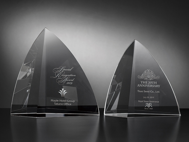 3 【仕上がりイメージのご確認】 楯やトロフィに文字やロゴが入った状態の仕上がりを