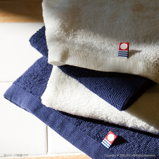 清楚な白とシックなネイビーを組み合わせた高級感あふれる今治タオルが優しく肌を包み込んでくれます。