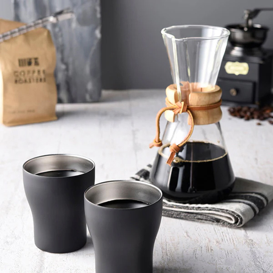 二重構造で温かさや冷たさが長持ちする、スタイリッシュなステンレスカップです。