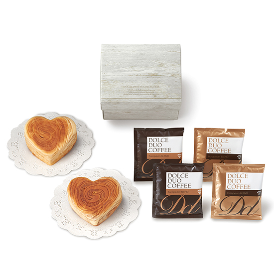 | セット内容 | ハートのデニッシュパン/(メープル、チョコマーブル)各1個 ・ドリップ式レギュラーコーヒー/8g×4袋 ※賞味期限:20日 |
