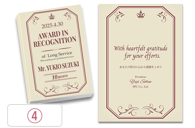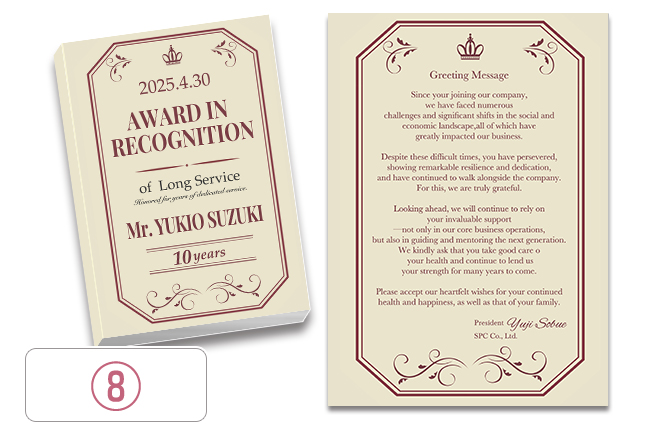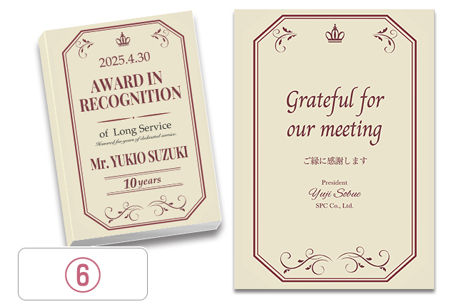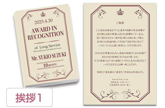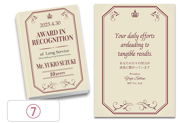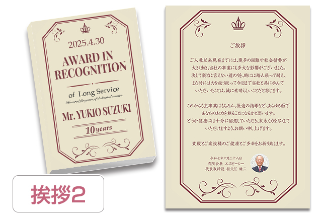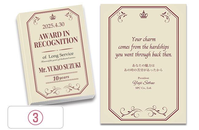 もちろん可能です。ご希望内容をスタッフまでご連絡いただければサンプルを作成させていただきます。また退職記念品の他にも成績表彰・達成記念などのご用途にも対応させていただきます。詳しくは、お電話お問合せフォームからご相談ください。
