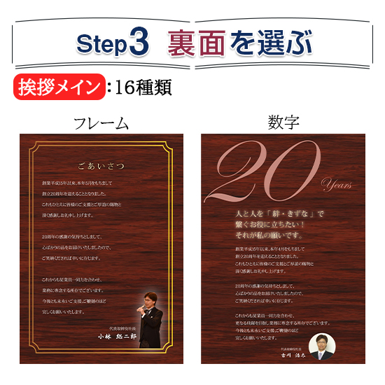 周年数や代表者様のお言葉を