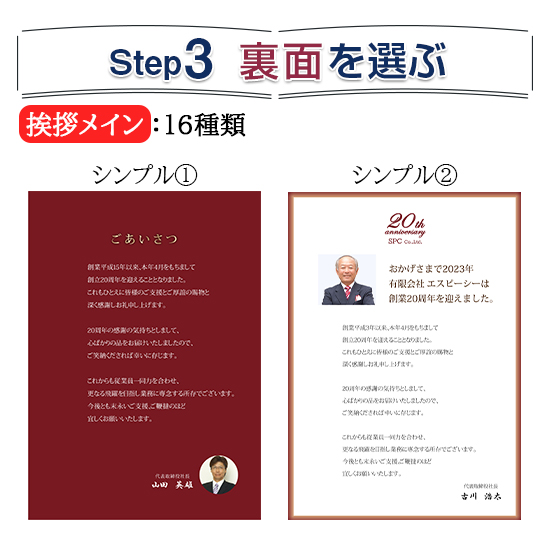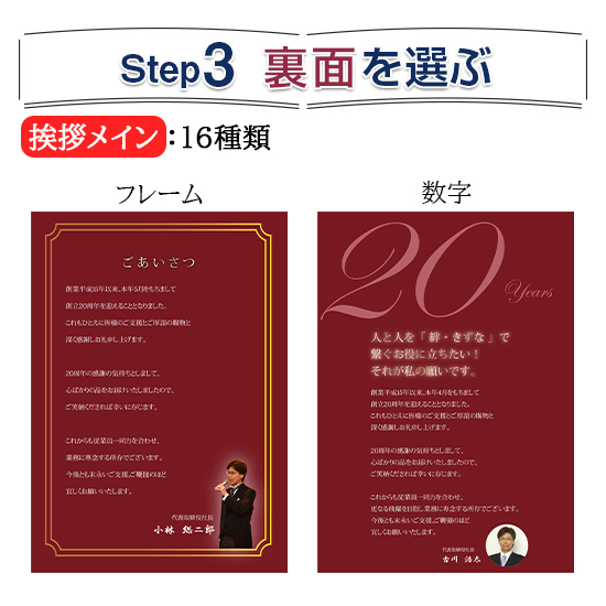 周年数や代表者様のお言葉を